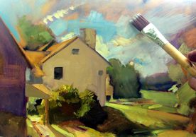 For Missouri artist Allen Kriegshauser, one of the best ways to offer a fresh look at the landscape is to simplify the composition and use strong color relationships that go beyond nature. After blocking in the big shapes with dioxazine purple, Kriegshauser uses thick strokes of bright cadmiums, phthalocyanines, ultramarine blue, and other pigments to build up the surface of his painting. “I raise the color bar by mixing and test driving different color combinations, pushing values, and raising the chroma levels,” the artist explains. “As I become more confident in my color choices, I avoid thinning the paint as much as possible using only a standard oil painting medium when necessary. This layering gives me a relatively stable dry base over which to add more colors.”
