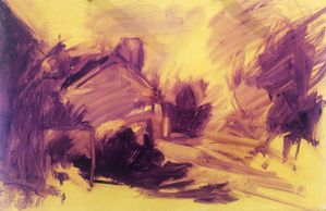 I thin the dioxazine purple with minimal amounts of mineral spirits to create a quick value study establishing my darkest values first and map out the large foundation shapes. I continue to thin the paint as the values lighten. Within five minutes I usually have a value study that sets the pattern for the light and dark values in the final paintin
